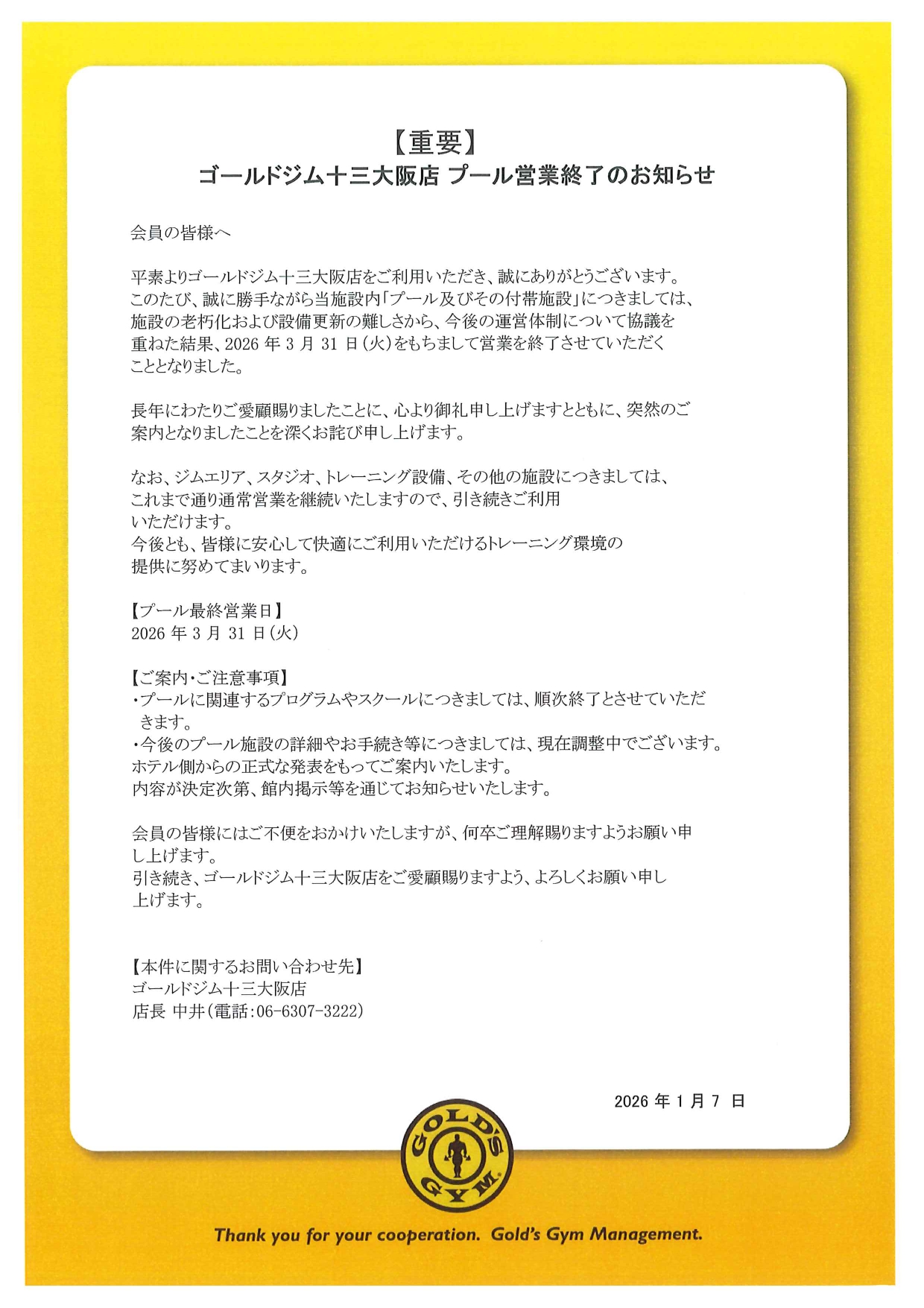 全施設第2月曜日 プール毎週木曜日 ※2026年3月31日(火)をもってプール営業を終了とさせていただきます。 詳細はページ下部をご確認ください。 |